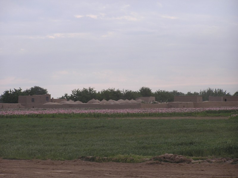 A village surrounded by poppies in northern Afghanistan. - 2004